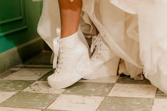 Zapato tenis de novia tipo bota encaje ivory y blanco