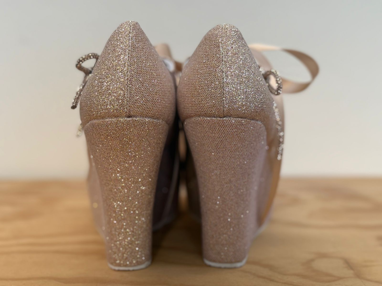 Zapatos de Plataforma Rosa Oro con Brillo | Cómodos, Ligeros y Elegantes para Fiesta o Boda